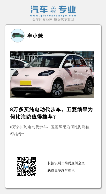 总结:经过这样一番对比,其实可以看出五菱缤果更务实,作为一款纯电代步车型,空间、部分配置等方面略胜一筹,顶配价格也要便宜1000元,性价比更胜一筹。如果奔着省钱买纯电车,显然缤果会比海鸥更值得入手。