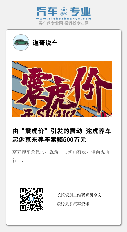 此外,该人士强调,京东养车“震虎价”将再升级,联合品牌商家再加码补贴5亿元。京东养车要做的,就是“明知山有虎,偏向虎山行”。