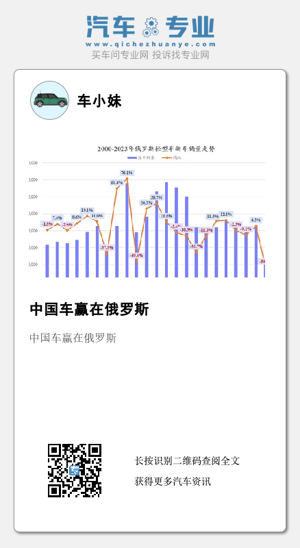 2023年俄罗斯乘用车市场的情况究竟如何,又是哪些自主品牌和车型发挥了巨大的推动作用呢?