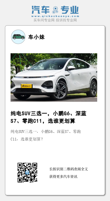 不知道怎么选车?跟着销量选不失为一个稳妥的方法。因为车主们已经用真金白银为我们筛了一遍,留下的都是经得住市场与消费者“挑刺”的畅销品。本期咱们就来找出三台畅销的纯电SUV,符合预算20万+的纯电用户考虑,它们分别是小鹏G6(图片|配置|询价)、深蓝S7(图片|配置|询价)、零跑C11(图片|配置|询价),其中小鹏G6全系皆是纯电版,深蓝S7与零跑C11提供增程与纯电版,单看它俩的纯电版,销量不如小鹏G6,那这是否代表就可以盲选小鹏G6?