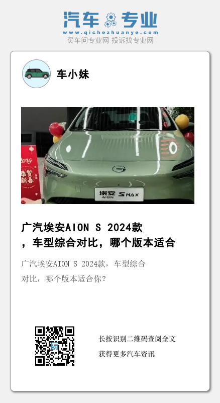 随着电动车市场的日益竞争,越来越多的车企开始推出更加高性价比的电动车型,其中广汽埃安新能源的AION S(图片|配置|询价) 2024款就受到很多朋友的关注,但是在官方在售的五款配置里哪个版本适合你呢?下面我会对这款车进行详细讲解,具体我们一同往下看吧。