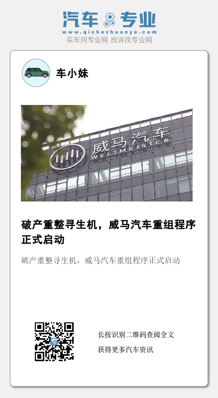 时至今年1月初,威马汽车对外宣布其已完成审计评估、债权申报、资产核查等工作,并与多个意向投资人接洽取得初步成果,因此向法院申请从预重整进入重整阶段。