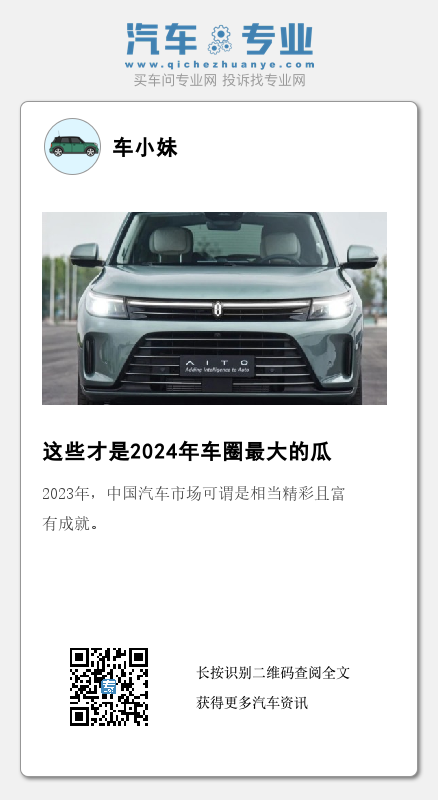 虽然2023年车市的各种现象已经结束,但是影响仍然在持续,2024年车市还会有哪些有趣的事发生,大家不妨先跟笔者先来吃个“瓜”。