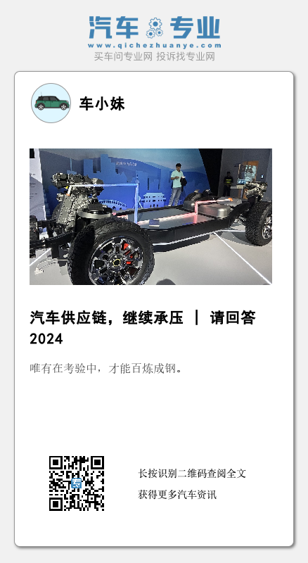 未来,我们可以看到,杀出重围并且生存下来的供应链企业,必然会是国际一流的企业。2024年的汽车市场,与其说进一步考验汽车供应链的承压能力,也是在锤炼、提升供应链的韧性与内力。