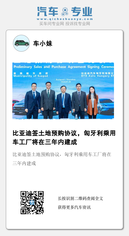 1月30日,比亚迪与匈牙利塞格德市政府正式签署比亚迪匈牙利乘用车工厂的土地预购协议,这标志着比亚迪在欧洲地区的本土化进程取得了新的实质性突破。