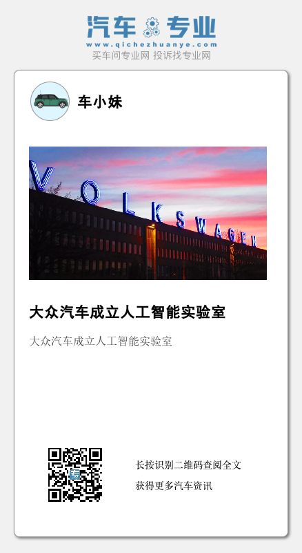 在一份新闻稿中,大众汽车表示,新成立的人工智能实验室将作为“全球联网的能力中心和孵化器”,致力于在汽车创新技术领域进行概念验证。