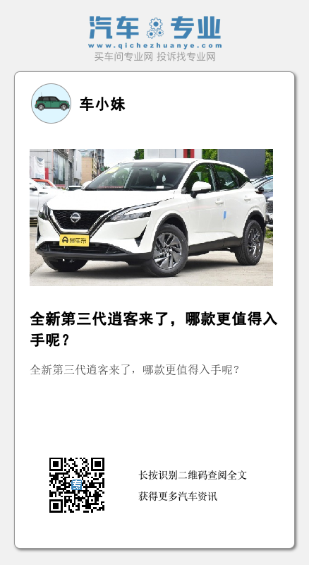 经过以上分析不难看出,全新第三代逍客与老款相比,在多个核心功能上均有了较大提升,配置更为丰富,智能化程度更高,再结合目前品牌较大的优惠政策,对消费者来说,吸引力还是比较大的,且车型价格在15万以内,入手门槛较低,作为日常代步工具,还是比较合适的。