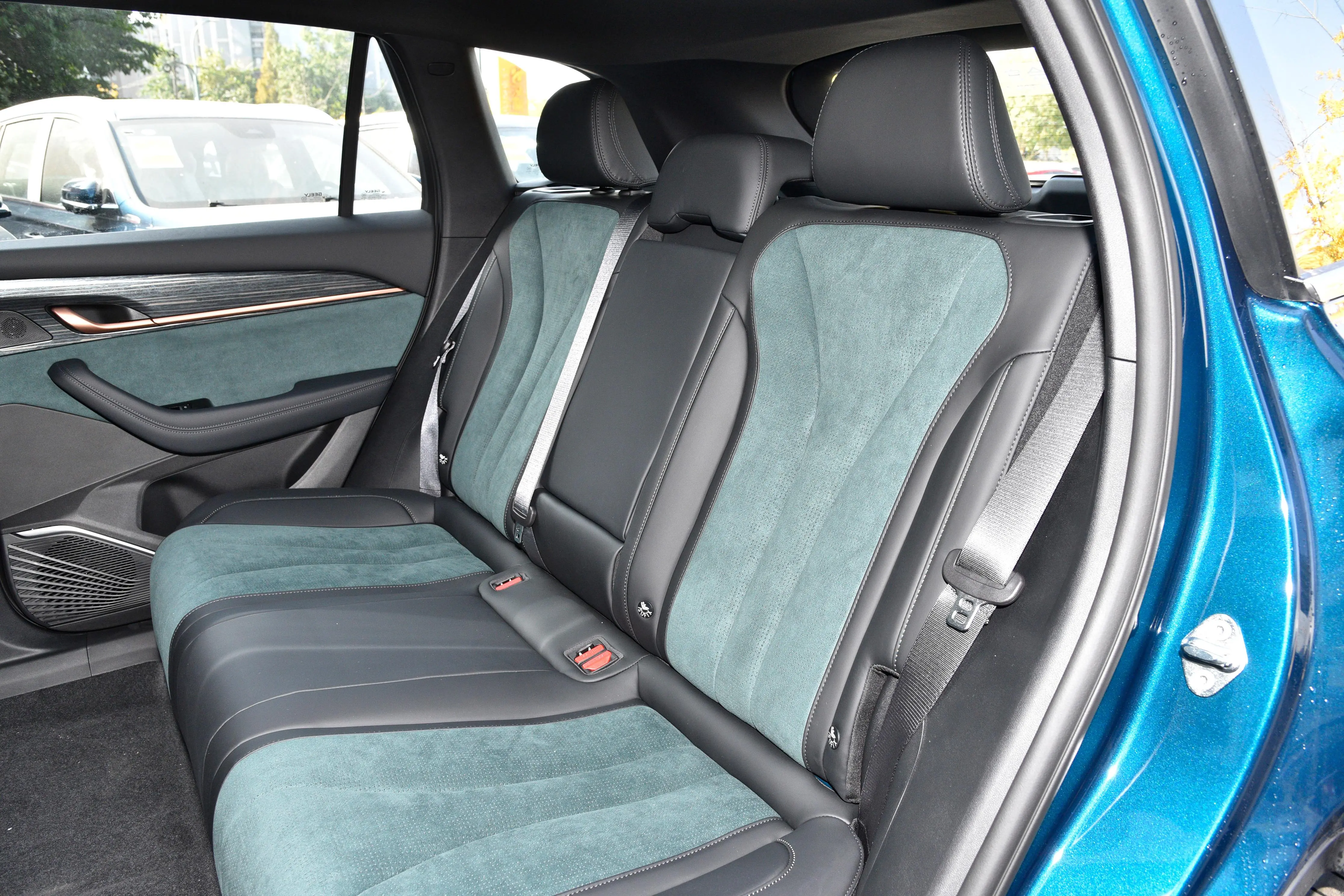 车身尺寸为4770*1895*1689mm长宽高,轴距2845mm,小编180CM,在试驾时,前排顶部空间预留了一拳以上的位置,到第二排之后,腿部即使在翘二郎腿的情况下,也剩余两拳,驾乘空间堪比中型SUV。