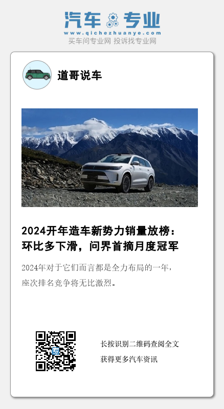 值得关注的是,除了销冠易主之外,造车新势力们2024年开年有了一个明显的变化,暨环比普遍下滑,除了年底主动降库存的哪吒汽车以及AITO问界和阿维塔外,其余品牌均出现了环比下滑。对于它们而言,新年开局压力不小。