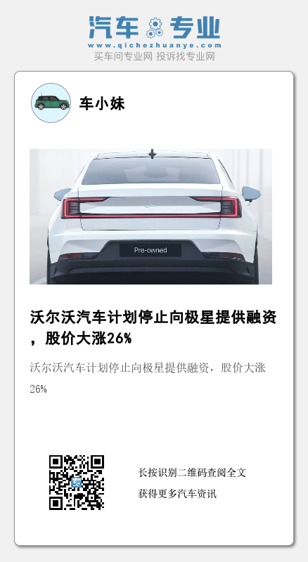 在宣布将停止向子公司极星(Polestar Automotive)提供资金后,沃尔沃汽车股价于2月1日大涨超过26%。