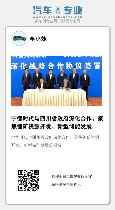 近日,四川省人民政府与宁德时代在成都签署全面深化战略合作协议。