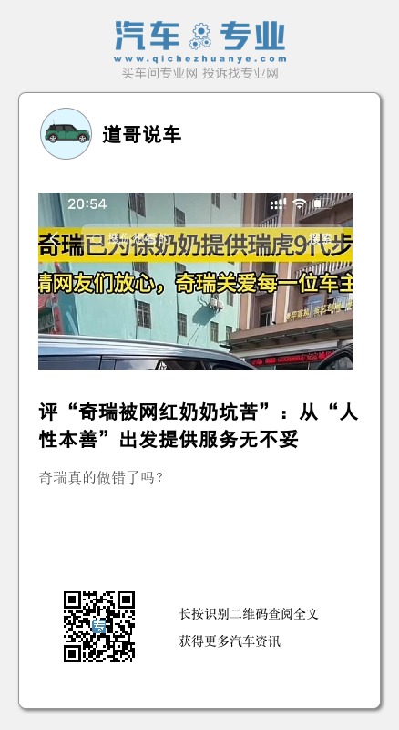 至于为何会出现奇瑞“弄巧成拙”的说法,无非是事件中的好人,最后被发现没有那么好。但,这和奇瑞有什么关系?作为品牌方,奇瑞没有义务和权力去判断事件中双方的是非黑白,也没有能力去甄别“后真相时代”中事件的真相,毕竟被带跑偏的不止是奇瑞,更是千千万万的网友。从“人性本善”的朴素原点出发,为用户提供服务,在笔者看来本身并无不妥。
