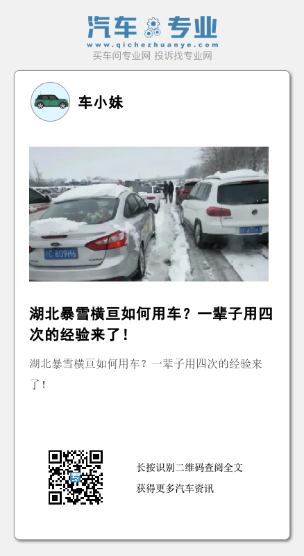 为了尽快疏通交通,湖北部分高速路段提前开始了免费放行,铲冰除雪的机械设备也纷纷上路。由于上一次如此规模的暴雪还要追溯到08年,看得出来从官方到个人确实对这个情况准备不足。对于大多数人来说,雪天应该如何用车可以说是一片空白。