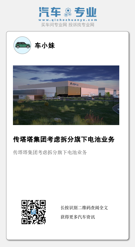 其中一名知情人士表示,由于一些现有投资者可能希望退出,塔塔汽车也在考虑将电动汽车业务分拆的计划,可能会在稍后阶段作为一家独立公司上市。不过上述知情人士也明确指出,这些计划均处在初期考虑阶段,而塔塔也可能会决定不拆分业务。