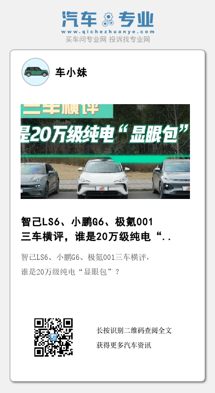 毋庸置疑,无论是智己LS6、小鹏G6还是极氪001,它们的综合实力都很强。在终端落地价差距不大的前提下,也可以看出,智己LS6和小鹏G6在智能交互、智驾功能、性能输出、续航里程部分表现均更亮眼,极氪001则是续航里程略有优势。因此智己LS6和小鹏G6在我看来强于极氪001,至于谁更强?从提速、续航以及充电效率来看,智己LS6或多或少都有优势。因此在我看来,目前智己LS6是更值得考虑的选项。