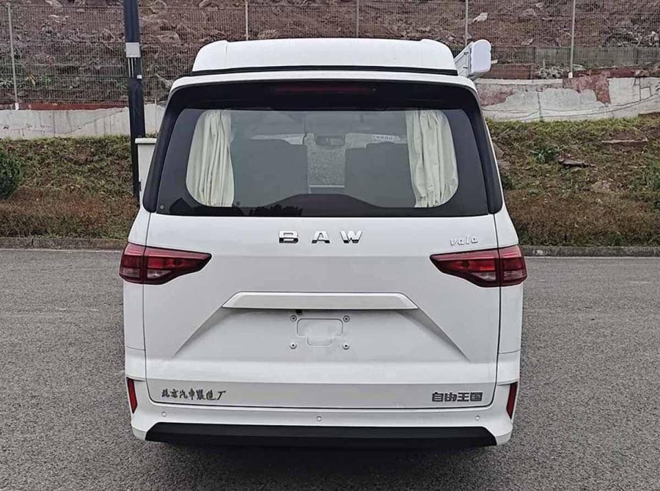 尺寸, 这款车的长宽高分别为5240mm/1900mm/2075(2068)mm,轴距达到了3200mm。但从数据上看还是不错的,毕竟主打功能性!而到了侧面才看到了些“露营”的味道!与车头的诡异相比,侧面就相对平缓了许多,双侧采用了单侧滑门的设计,整个内凹式腰线的加入更好的凸显出了新车的层次感。此外,车顶还采用的是可升顶设计,打开升顶后可以形成一个车顶帐篷,可容纳1-2人平躺休息,整个可玩性也大大提高。来到车尾,后尾门开口面积很大,但尾灯设计更简洁,BAW字母车标很醒目。后杠造型很细窄,后备箱底部开口离地间隙很小,可以方便后备箱装卸大件物品。对于实用性上,这款车还是把握的非常到位。
