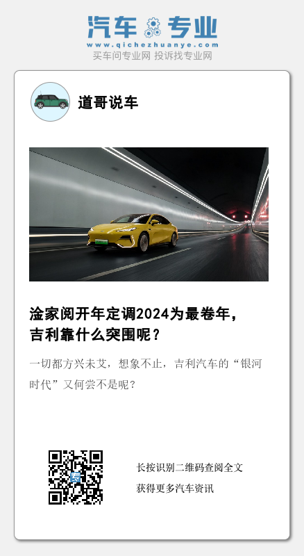 尽管行业不可避免地继续内卷,但淦家阅却在字里行间透露出对当下汽车行业的无限期待,他把中国汽车行业当下所处的时期比喻成是“青年时代”,这个比喻无疑是十分贴切的。中国人推崇三十而立,而2024,也恰好是中国自主汽车的而立之年,中国自主汽车进入了它的“青年时代”。青年时代,有干劲,有冲劲,有希望,上百年的全球汽车产业,中国总算是抓住了新能源化转型的机遇,实现弯道超车,置身其中的吉利汽车也迎来属于自己的“银河时代”。