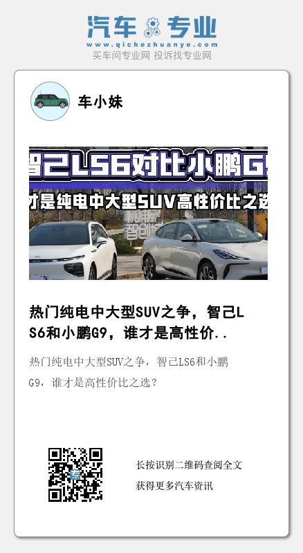 可以发现,智己LS6和小鹏G9都有各自的产品优势,只不过,智己LS6在造型设计、智能科技、行驶性能上都更为出色,而小鹏G9则在舒适性上有优势。另外,我们通过懂车帝报价系统得知,智己LS6目前落地价是22.18-27.87万元(北京平均价),而小鹏G9落地价是27.10-36.36万元(北京平均价),且结合配置来看,前者性价比更高。