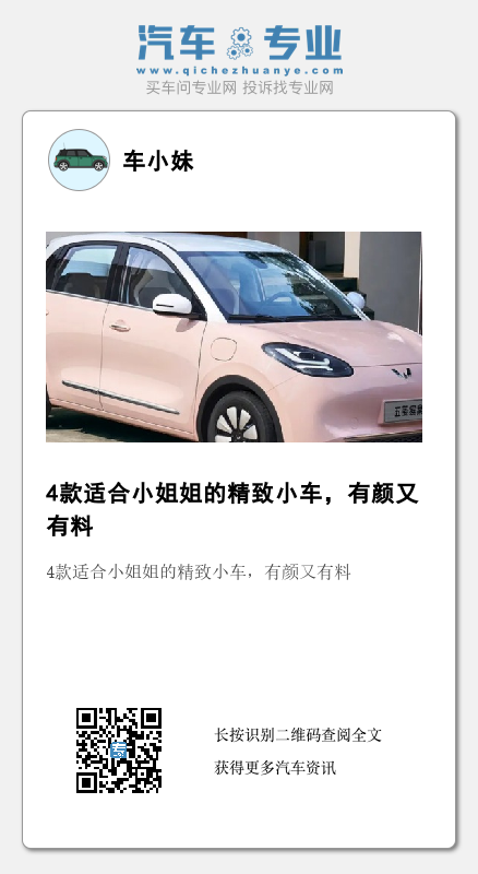 相比男性购物时进行多方位因素考虑,大部分女性消费者的信条是“颜值即正义”。她们更喜欢精致、有细节的车型。所以本期给小姐姐们推荐4款有颜、有料、又好开的小型车。