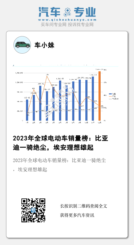 2023年全球Top 20电动车品牌榜:比亚迪一骑绝尘