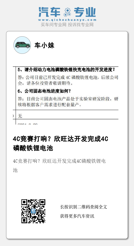 当然更重要的是,欣旺达的4C磷酸铁锂电池究竟能够拿下多少车企的订单?
