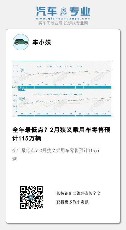 基于上述表现,综合估算,2月零售将达到115万辆。