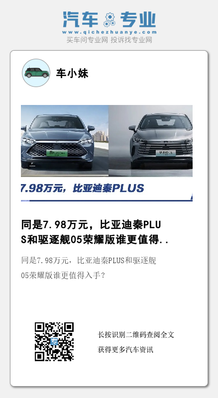 均是7.98万价格,秦PLUS和驱逐舰05荣耀版在配置层面有多大差异呢?