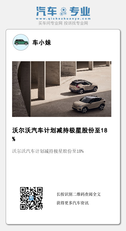 沃尔沃汽车总裁兼首席执行官Jim Rowan表示:“由于我们与极星有着重要的运营合作和财务关系,因此我们通过持有极星18%的较小股份,来保留沃尔沃汽车的影响力是合乎逻辑的。”