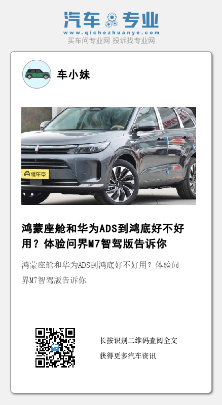 2023年11月至今,问界M7(图片|配置|询价)已经连续3个月,夺得中大型SUV细分市场销量冠军。它的畅销,在我看来华为的功劳很大,尤其是鸿蒙座舱和HUAWEI ADS 2.0高阶智能驾驶的配备,更进一步提升了它的竞争力和知名度,那么这两项配置到底好不好用呢?