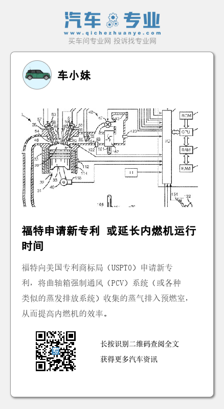 当其他汽车制造商放弃开发内燃机时,福特却比以往更致力于制造清洁的内燃机。据外媒报道,福特向美国专利商标局(USPTO)申请新专利,将曲轴箱强制通风(PCV)系统(或各种类似的蒸发排放系统)收集的蒸气排入预燃室,从而提高内燃机的效率。