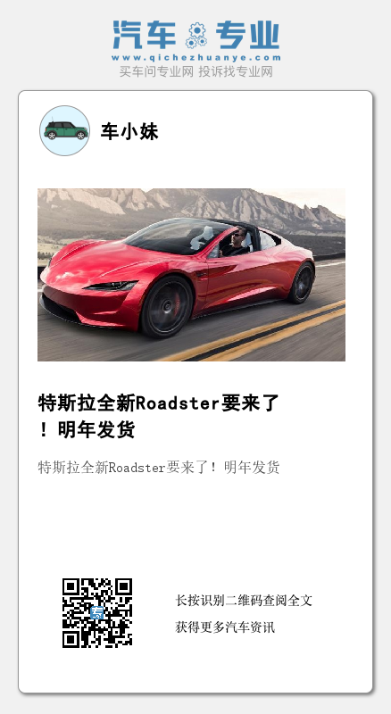 特斯拉首席执行官埃隆·马斯克在2月28日表示,该公司全新Roadster电动跑车预计将于明年发货。