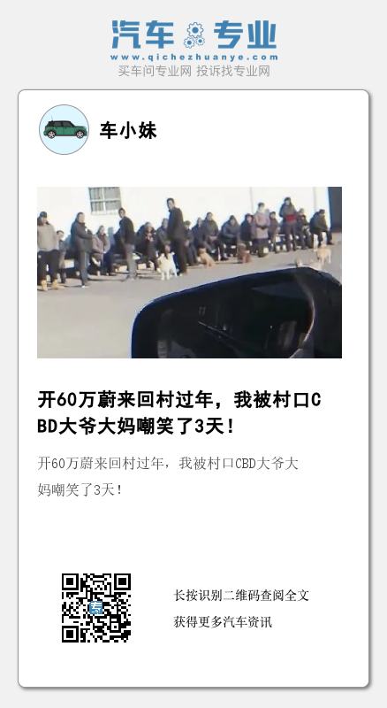 结果他告诉我,刚一回村就“翻车”了,村口CBD的大爷大妈普遍评价他60多万的蔚来ES8不如邻居20多万的宝马3系。