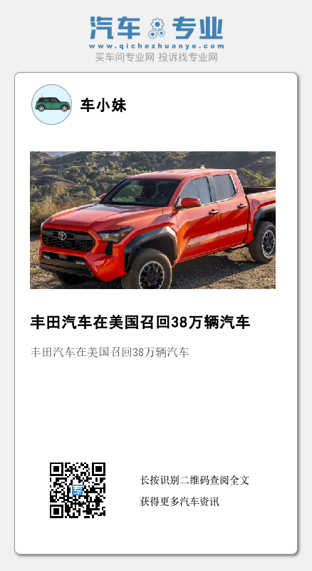据路透社报道,3月1日,丰田汽车宣布在美国召回约381,000辆卡车,原因是车轴问题可能会增加撞车风险。