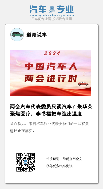与此同时,《财圈社&道哥说车》编辑也注意到,在操心汽车产业健康发展之外,来自车企的代表委员们也同样会关注民生,力求为人民的幸福生活建言献策。