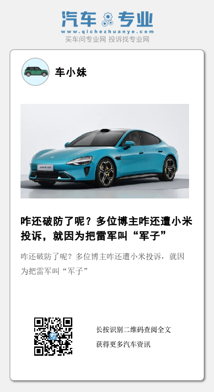 不过这一次,小米方面似乎是有点破防了!当然这也能理解,毕竟现在价格战这么一搞,尤其是极氪001这样的车型,祭出如此有杀伤力的价格,的确让小米SU7很难定价,如果定高价,可能卖不出去,如果“顺粉丝意”,降低上市价格,那么之前小米和雷军说的话,算怎么回事?所以可能在比较“恼火”的时候,小米在一些平台,把那些管雷军叫“军子”的博主给投诉了,很多博主表示已经收到了相关投诉,要求类似视频下架。