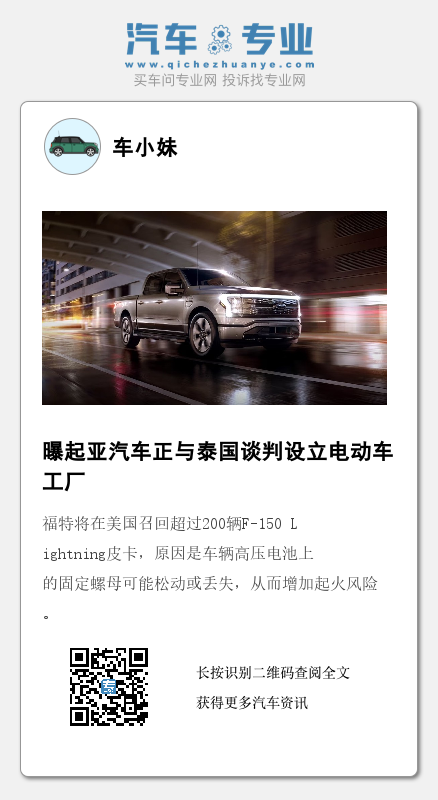 报告还称,该问题是由于高压电池接线盒母线上的一个或多个固定螺母可能在返工操作过程中被错误移除造成的。尽管此次召回可能影响多达216辆 F-150 Lightning,但估计只有20%的车辆存在缺陷。