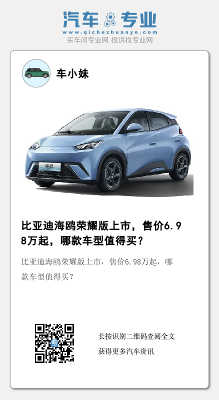 日前,比亚迪海鸥(图片|配置|询价)荣耀版正式上市,新车共推出3款车型,售价区间为6.98-8.58万元,相比于老款价格有所下调。