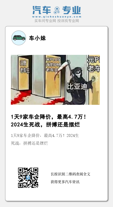 所以2024年内卷还会继续,力度还在隐隐加大。这才有了开头比亚迪10万的车再降2万、吉利长安纷纷跟进、合资措手不及、就连二手车市场都被严重波及的一幕。