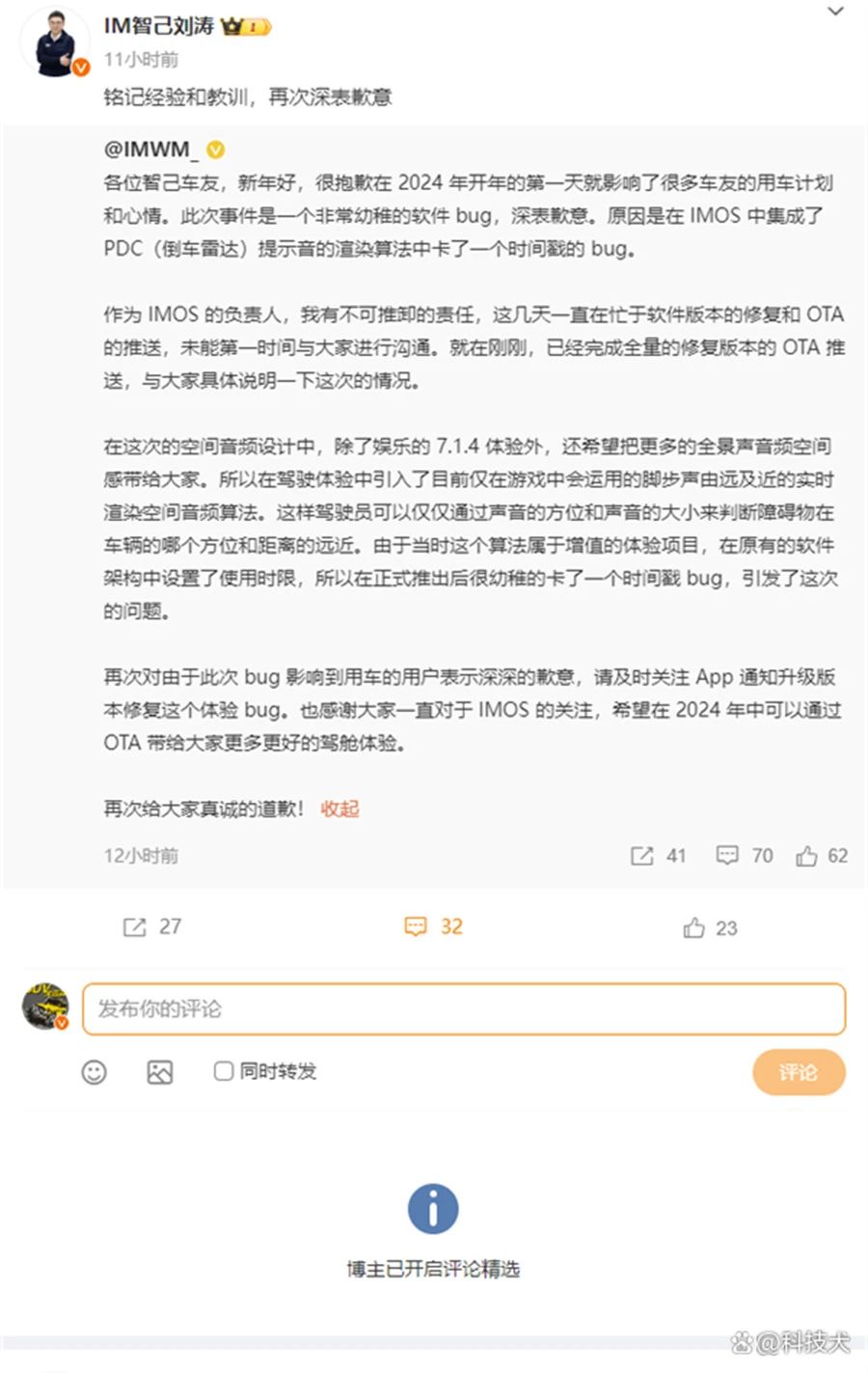 2024年初,有大批智己LS6车主在各大网络媒体平台上吐槽车机系统出现故障。如,主界面不显示车速、挡位等信息,雷达不报警,流媒体后视镜不显示,各种BUG的集体出现已经严重影响到车主的正常出行。