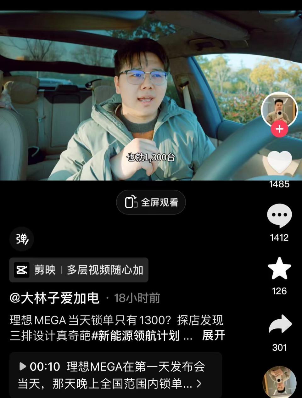 因为消费者买车有了更多参照物对比。理想MEGA上市之后,目前销量数据也不再公布了,汽车博主大林子爱加电透露,理想MEGA当天锁单只有1300台。从势头来看,很可能遇冷了,问界M9经历了去年年末的那一轮增长势头之后,在今年似乎热度也降了不少。