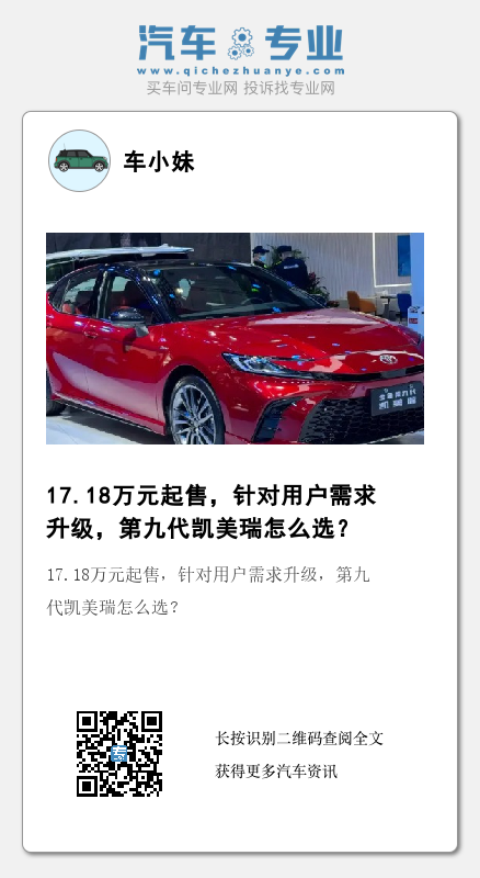 就在前些时日,第九代凯美瑞(图片|配置|询价)正式上市了,而该车作为日系车中销量担当之一,它在市场中一直以来都有着不错的体量,同时第九代凯美瑞在价格方面相比于老款车型也有一定的下探,并其在动力方面依旧为消费者提供了燃油版和油电混动版,共9款车型,那么这9款车型应该怎么选择你?