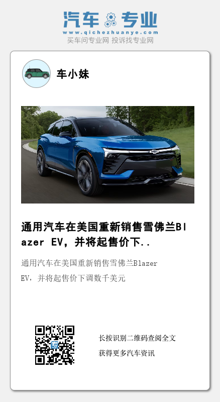 此前,有消费者和媒体称,雪佛兰Blazer EV的信息娱乐和充电系统存在问题,包括无法给电池充电,给消费者带来了不便。去年12月底,通用汽车宣布暂停销售雪佛兰Blazer EV车型。