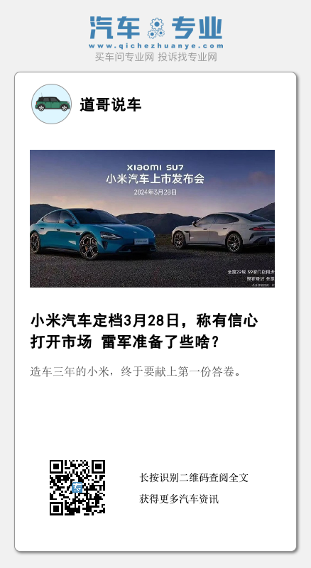 “小米汽车,需要做出点不一样的东西,其中最重要的是,智能科技”,雷军在告诉大家自己有信心以及做了充足准备的推文中还提到了这一点。这或许也是小米SU7面对激烈市场竞争的差异化优势。