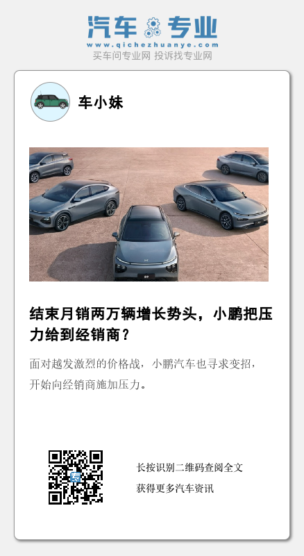 因此,或许经过综合考虑,向经销商施加一部分压力,是小鹏汽车解决当下销量与资金困境的重要途径。向经销商“施压”,小鹏汽车更希望经销商将库存压力转化为动力,“全力卖小鹏”,为企业带来实打实的销量。