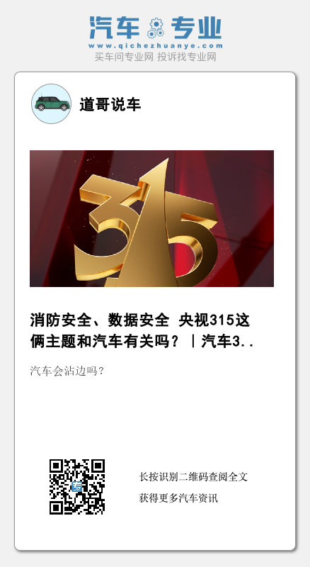 那么本次央视“3·15”晚会,消防安全、数据安全两大主题上是否会出现汽车的影子呢?