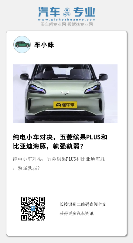 显然,价格相差1000元的两款配置,产品力出现了比较明显的偏差。缤果PLUS的空间表现、续航里程均有明显优势,尤其是续航里程,这两台车足足相差208公里;海豚则是五座布局能适用更多用车场景,后独立悬挂结构也占一定优势。综合来看,我认为续航里程对于电车来说更加重要,所以在同等价位下,两车虽然优势点不同,但个人更推荐五菱缤果PLUS。