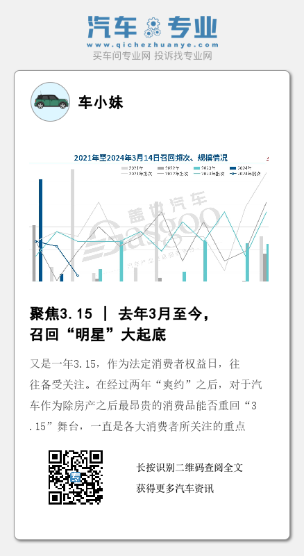 又是一年3.15,作为法定消费者权益日,往往备受关注。在经过两年“爽约”之后,对于汽车作为除房产之后最昂贵的消费品能否重回“3.15”舞台,一直是各大消费者所关注的重点。