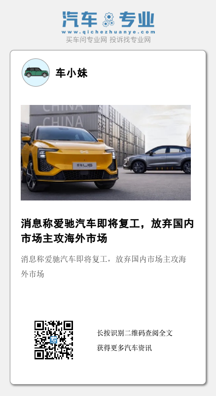 3 月 16 日消息,据第一电动汽车网消息,自去年以来因资金断裂陷入停摆的爱驰汽车获得了新一轮数亿人民币规模的融资,即将复工复产,未来将放弃国内市场,主攻海外。