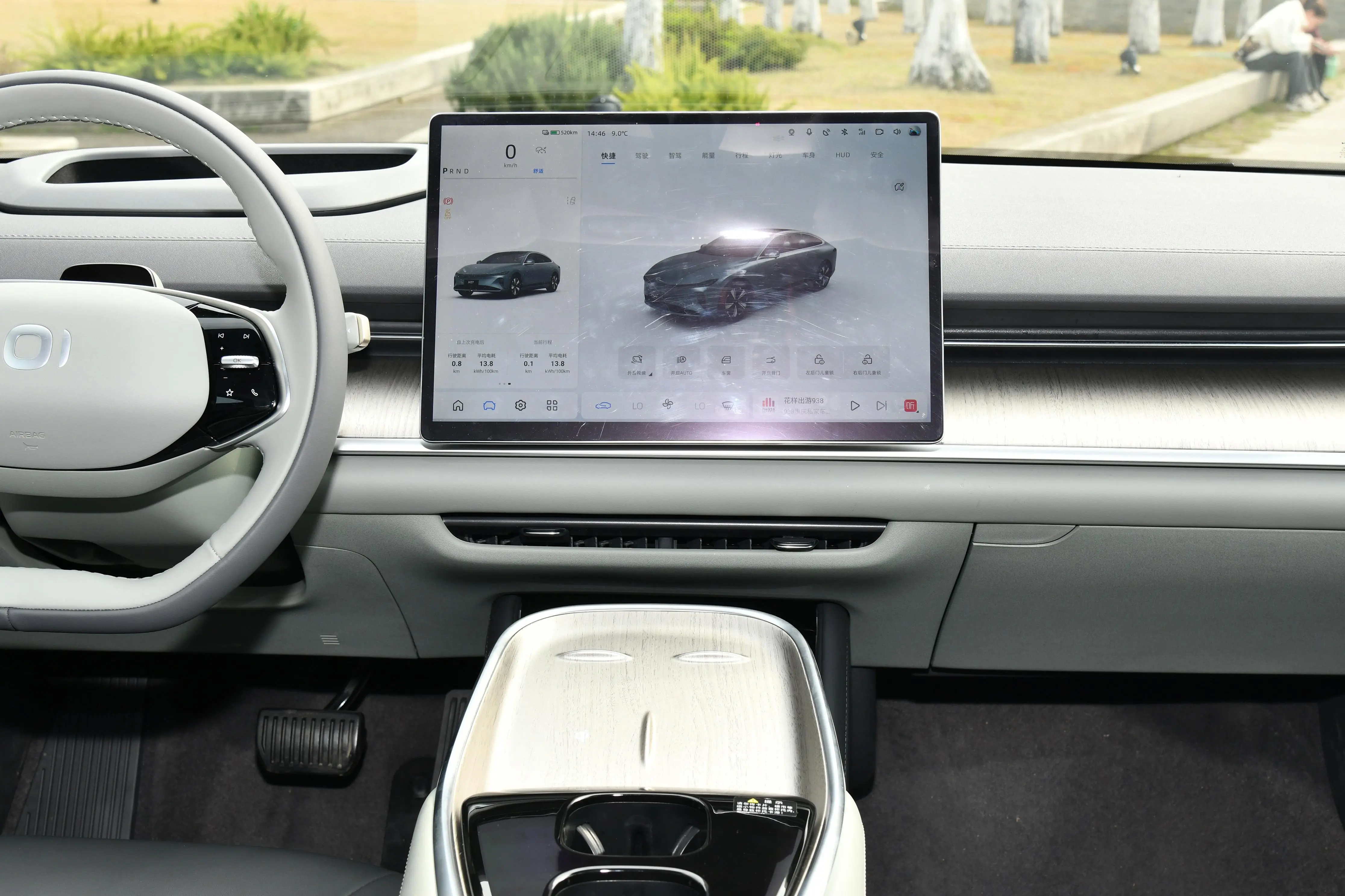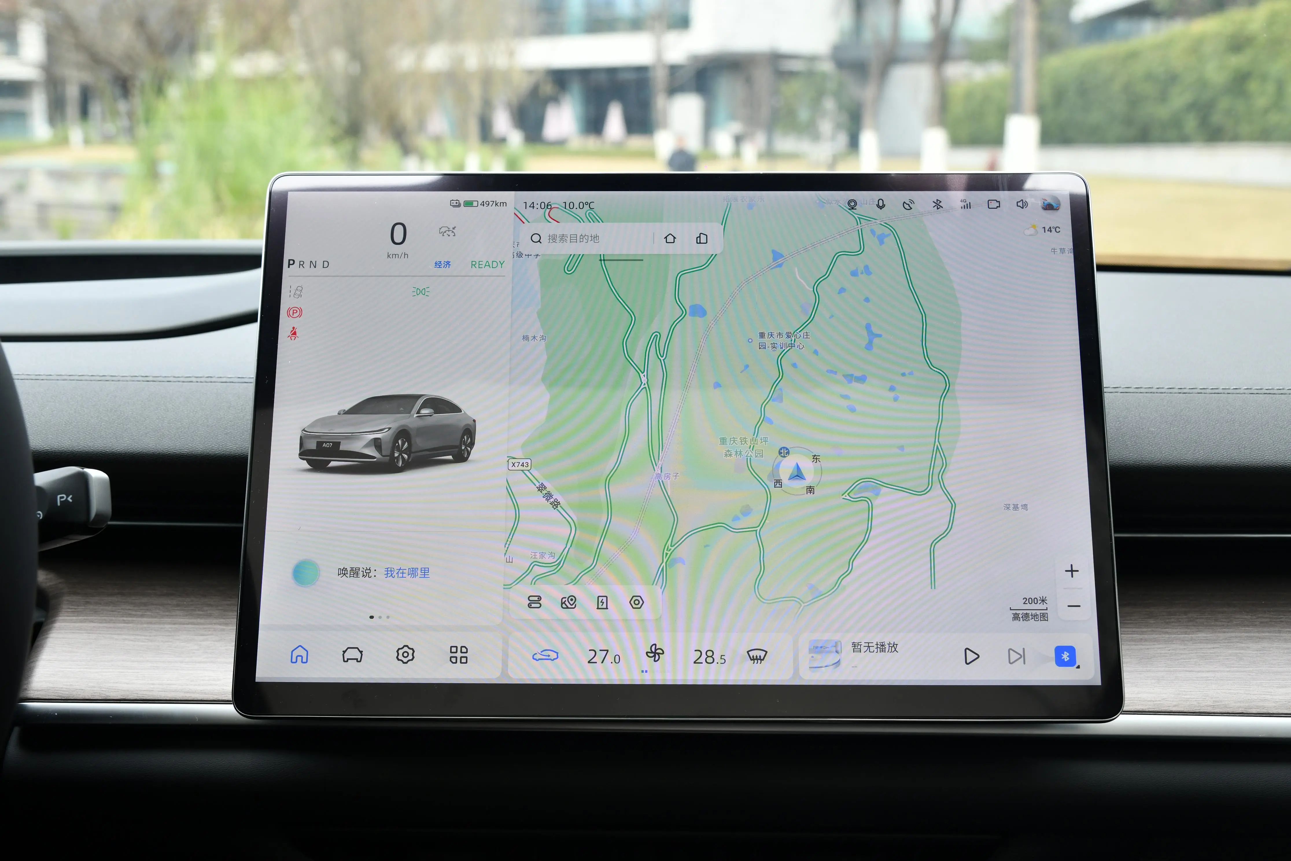 而长安启源A07的内饰,取消了传统的仪表盘,用HUD抬头显示系统代替,并配备15.4英寸中控大屏,内置以高通骁龙8155芯片为基础的启源OS车机系统,支持便捷自定义功能,可玩性也挺高的。