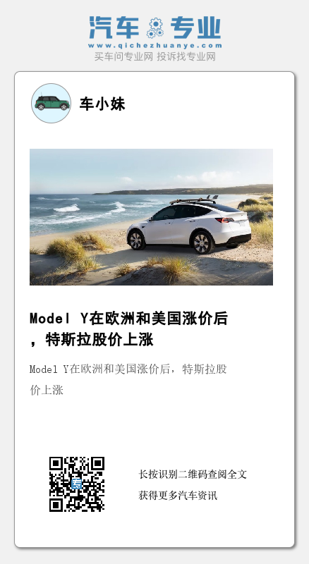 3月16日,特斯拉发表声明称,自3月22日起,Model Y在部分欧洲国家的价格将上涨约2,000欧元(约合2,177美元)。此前,在3月15日,该公司宣布,自4月1日起,美国所有Model Y车型的价格将上调1,000美元。